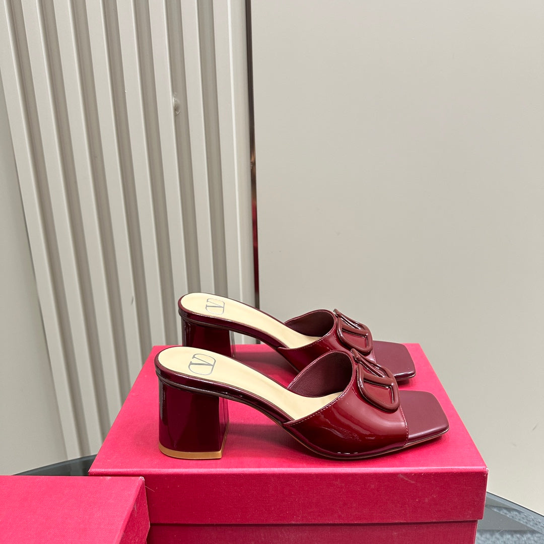 Vogo Signature High Shine Open Toe Sandals In Burgundy Glossy Lambskin 839829