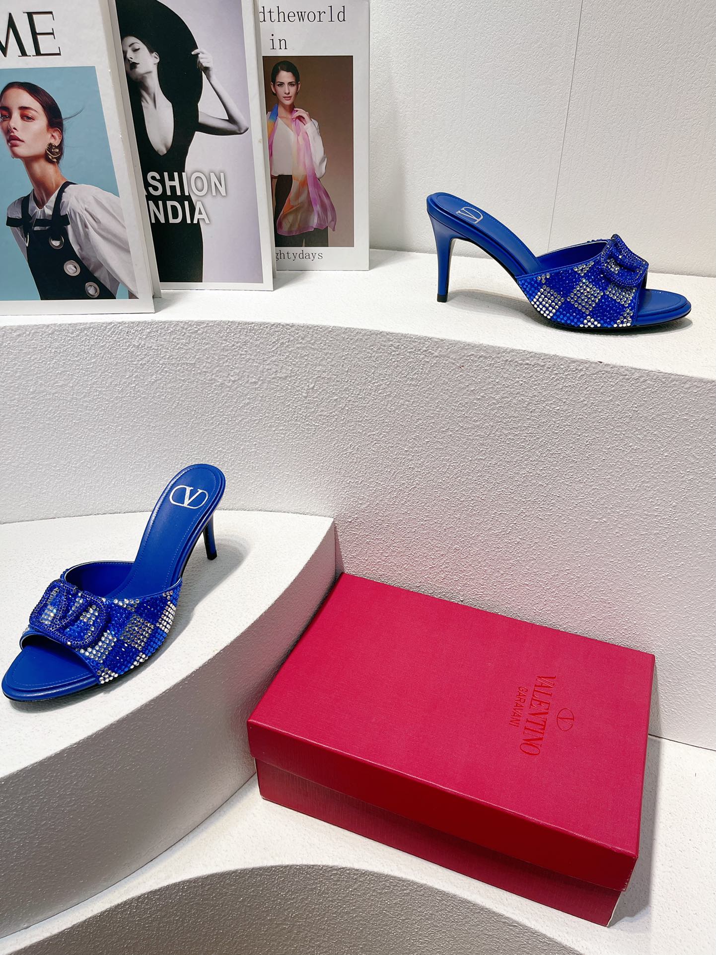 VT High Heeled Sandals Blue Sheepskin 292839
