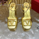 VT Signature 115mm Patent Leather Platform Pumps Gold Calfskin 286470