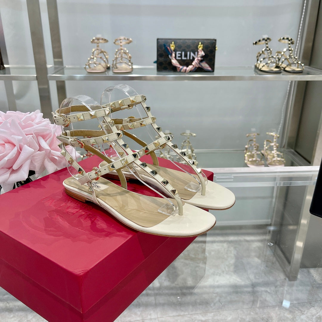 ROCKSTUD THONG SANDALS IN WHITE CALFSKIN