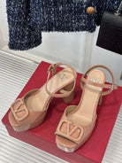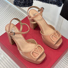 Sandal With Vlogo Signature Platform In Dark Beige Pink Glossy Calfskin 110mm 989458