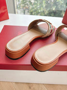 VT 2025 Cherryfic Leather Trimmed Slides Orange Sheepskin 286494