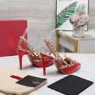 ROCKSTUD BOW SLINGBACK CHERRY RED PATENT LEATHER PUMP 95MM