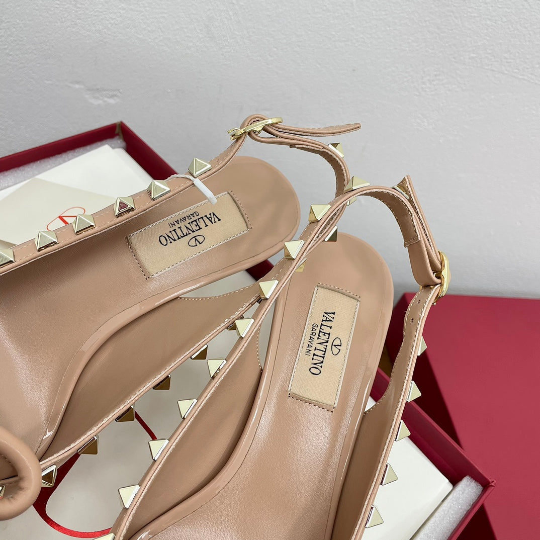 ROCKSTUD BOW SLINGBACK NUDE TAN PATENT LEATHER PUMP 60MM