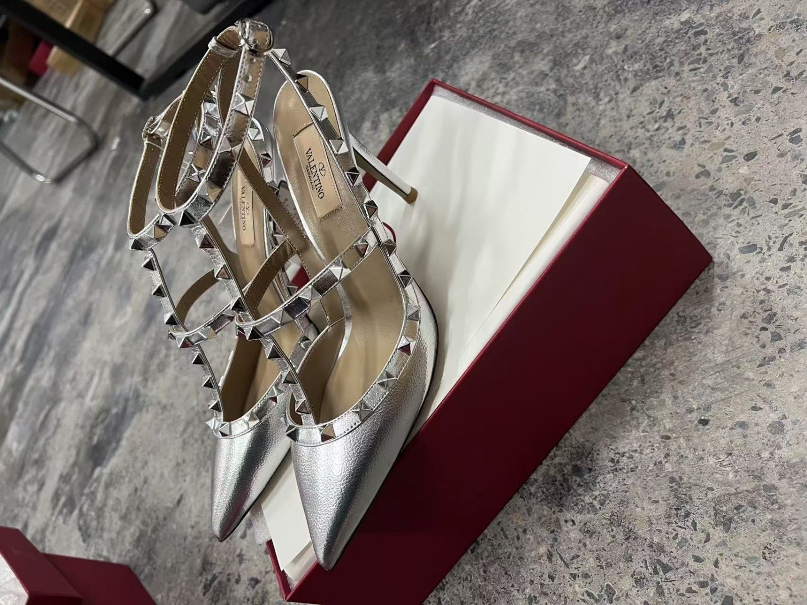 Valentino Rockstud Caged Pumps 95mm Silver Calfskin