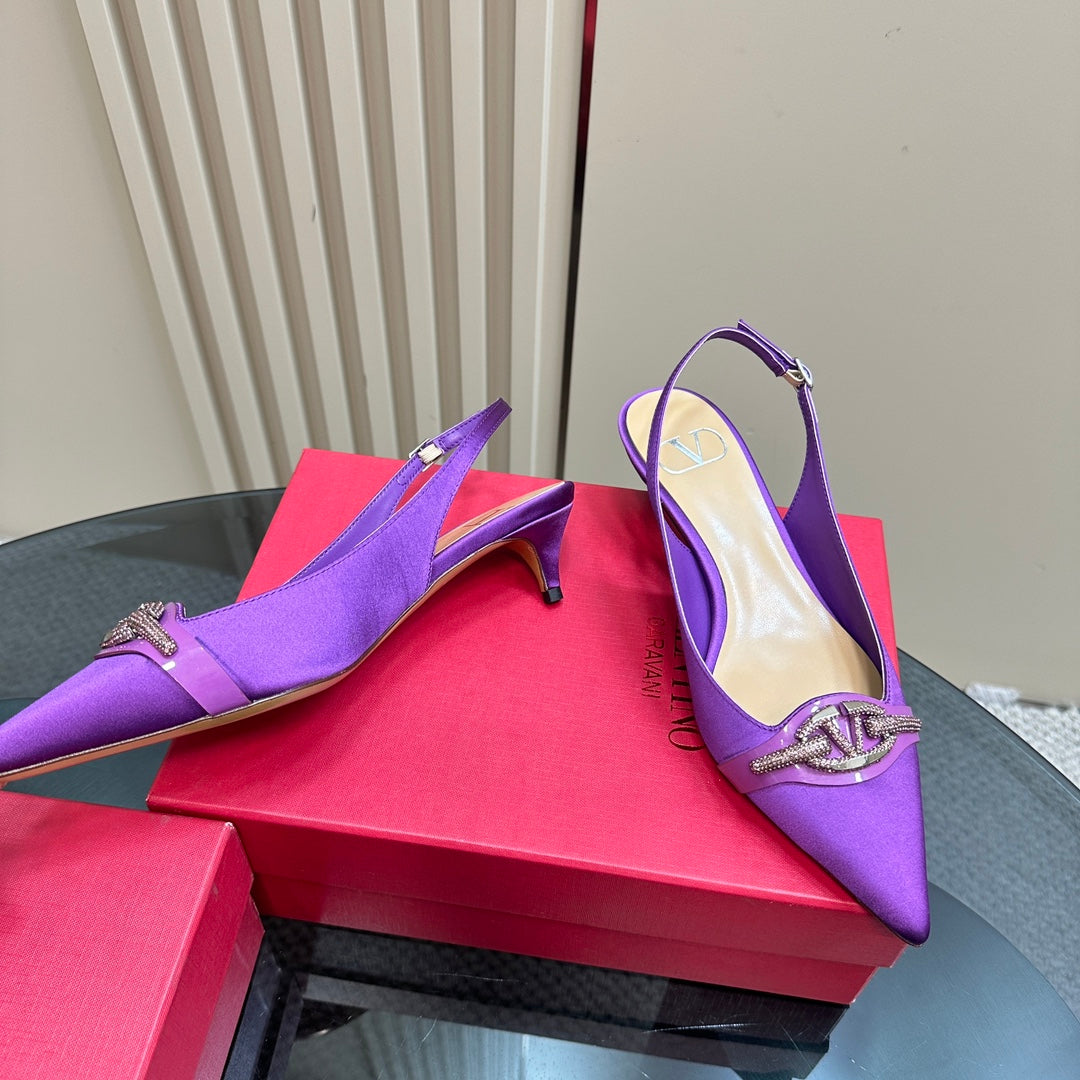 Valentino Slingback Pump 40mm In Purple Mix Beige Lambskin 999008