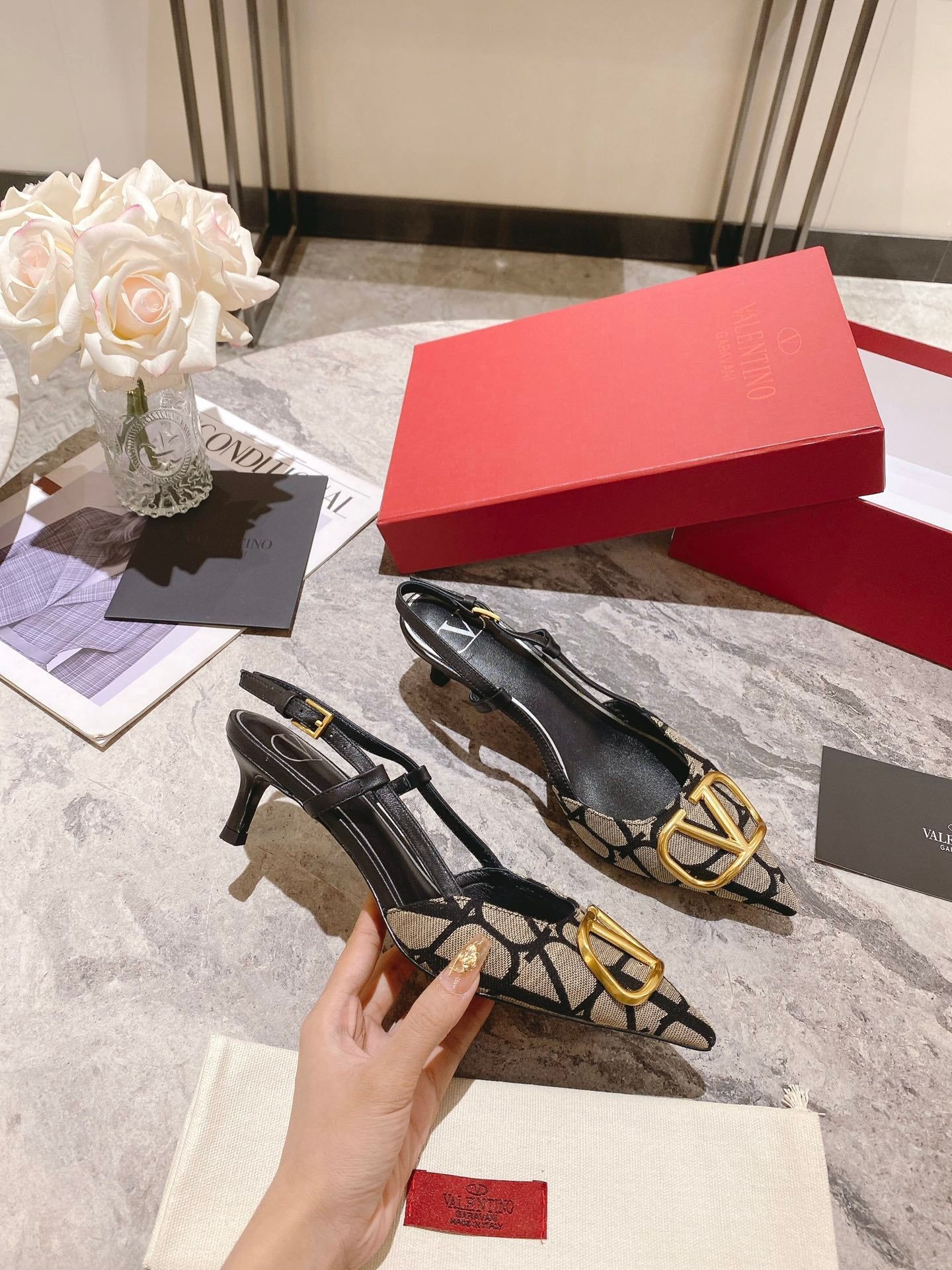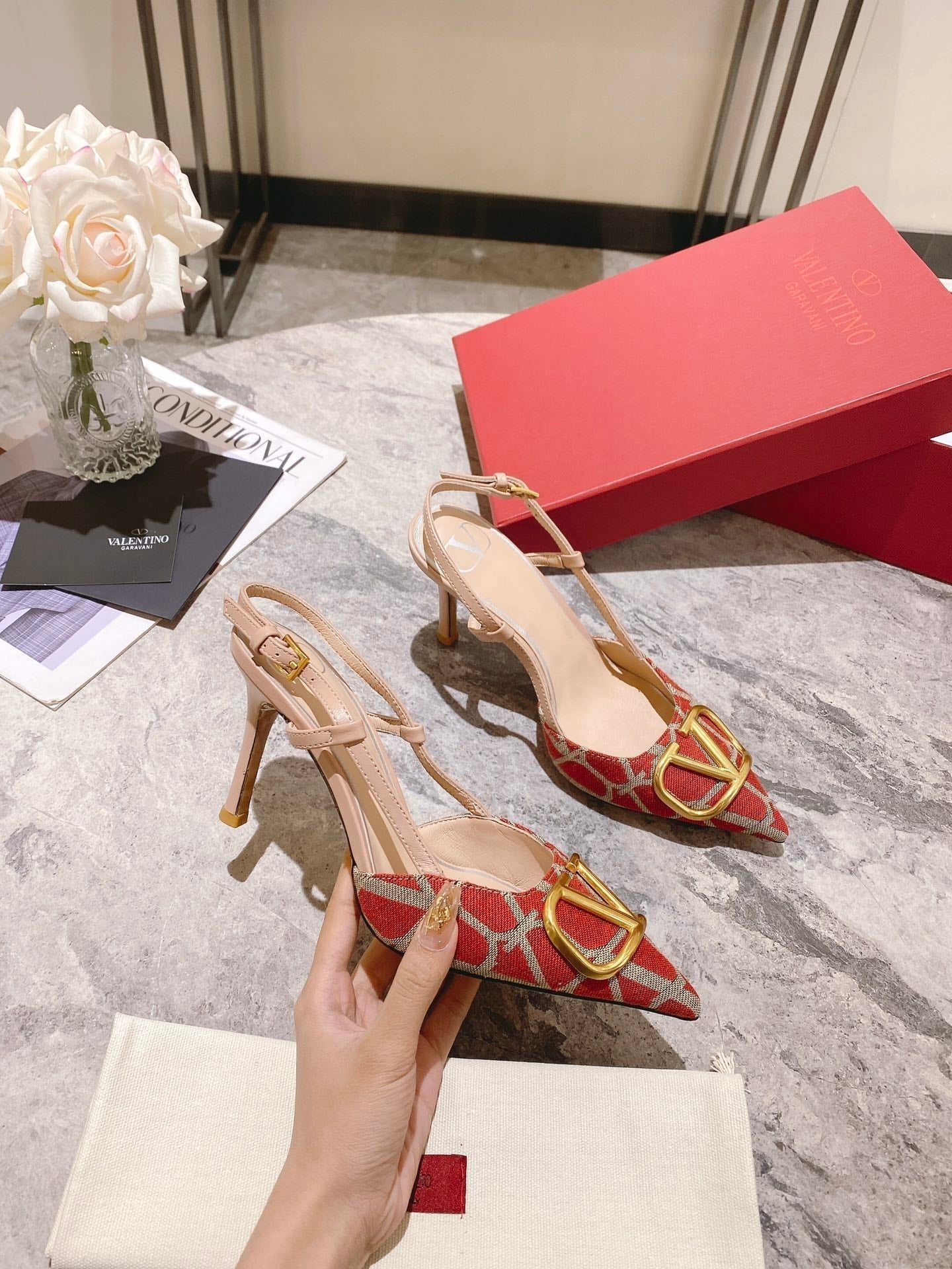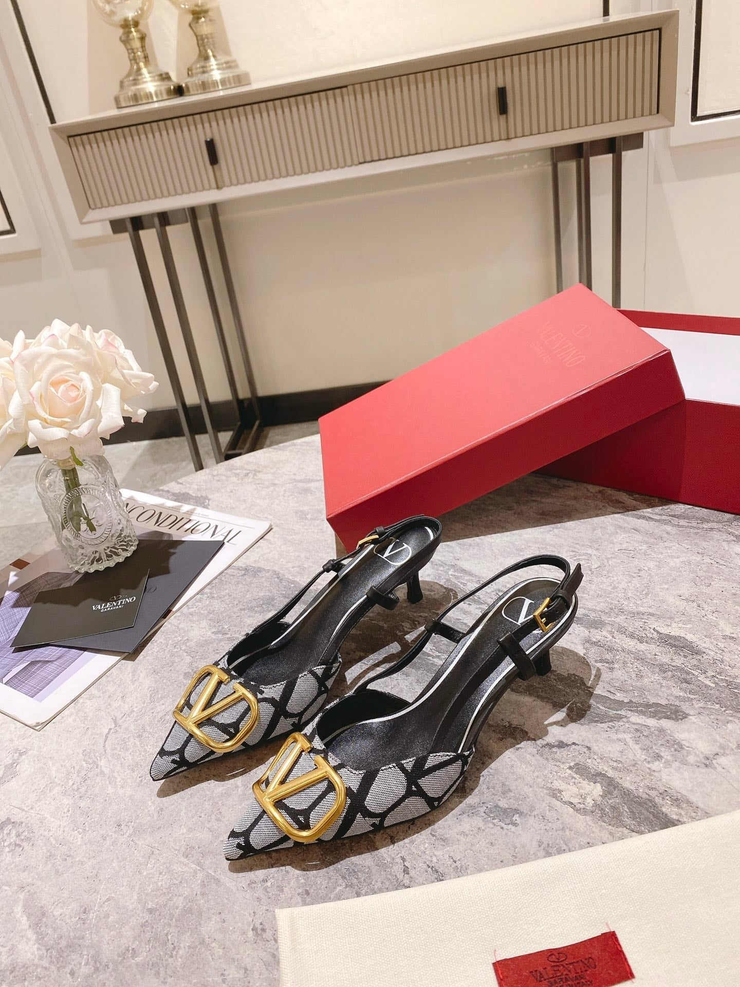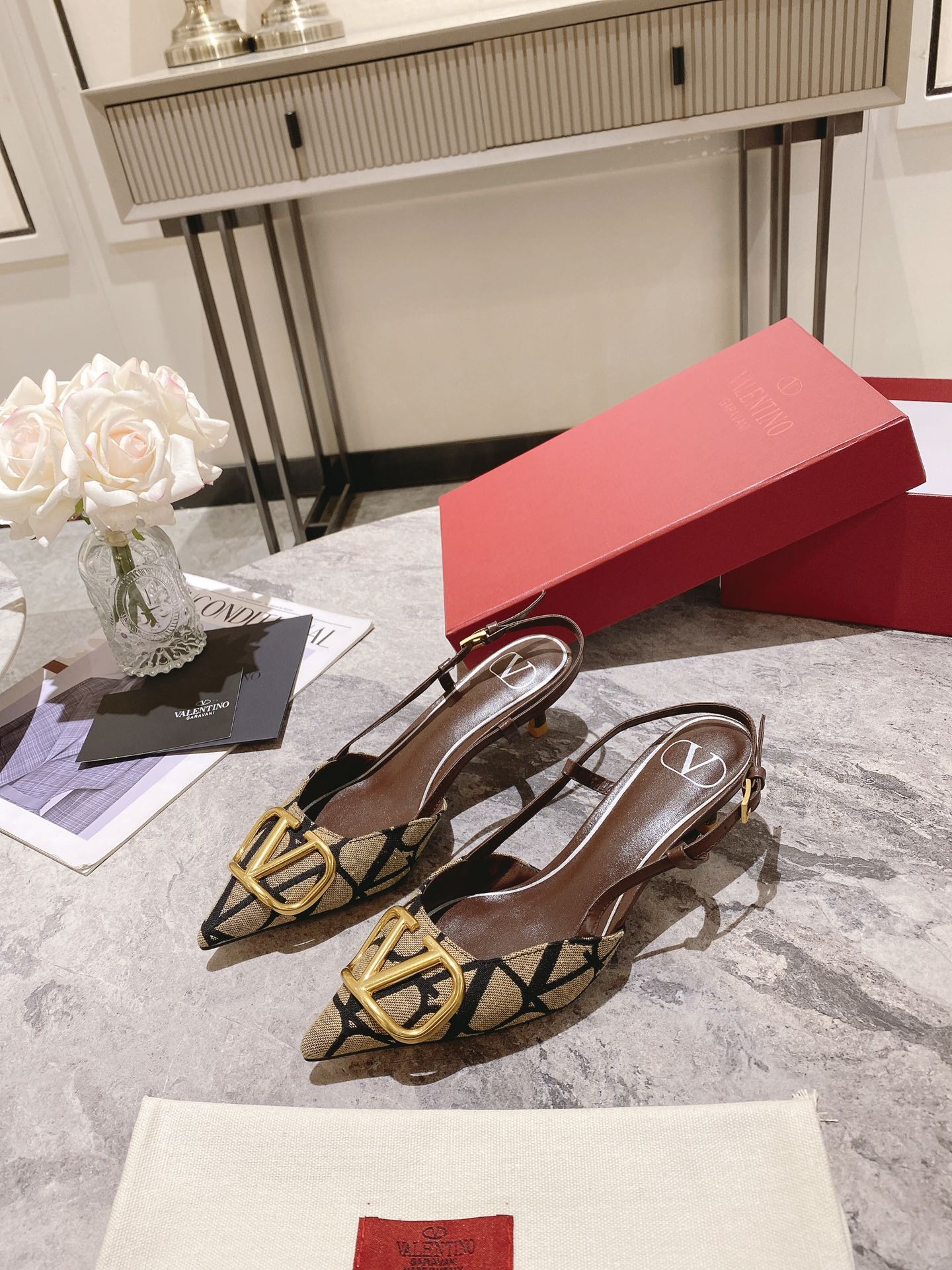 Valentino Slingback Pump Heel Fabric Print 239521