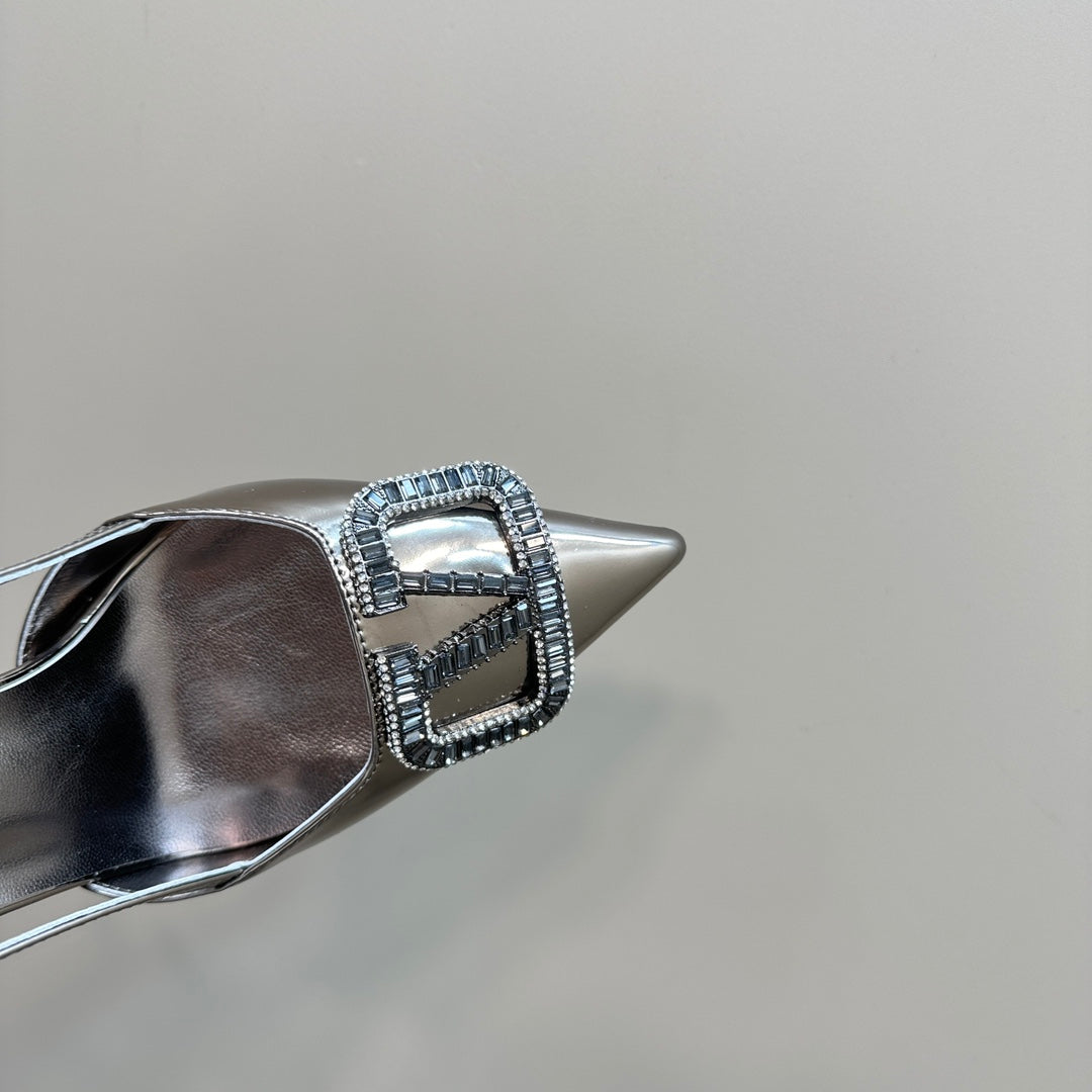 Vlogo Glow Laminated Nappa Leather Slingback Pump 100mm Dark Silver 999053