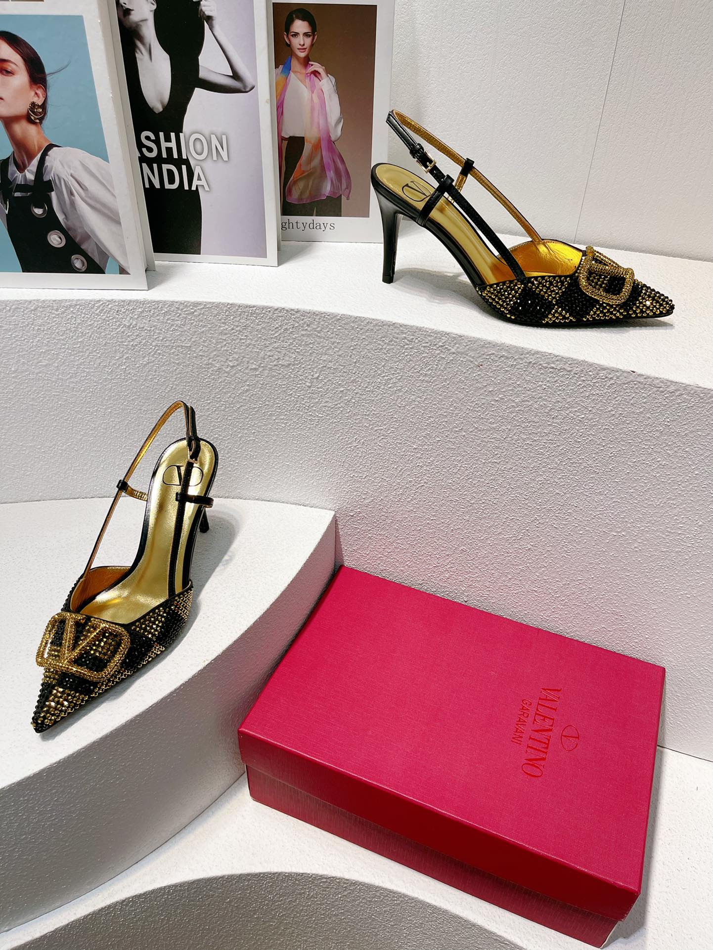 VT High Heeled Slingbacks Black Gold Sheepskin 292827