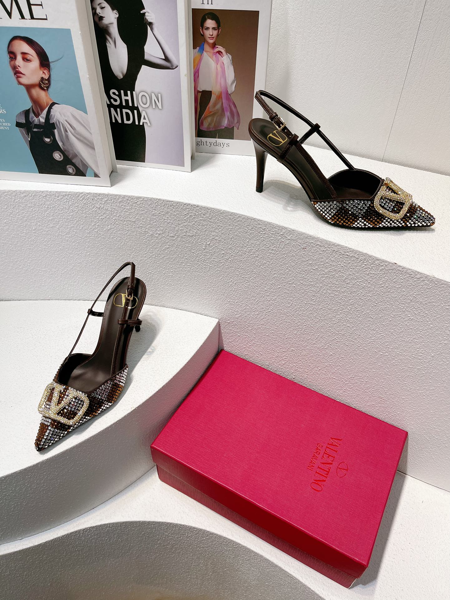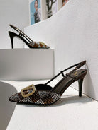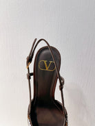 VT High Heeled Slingbacks Brown Chocolate Sheepskin 292826
