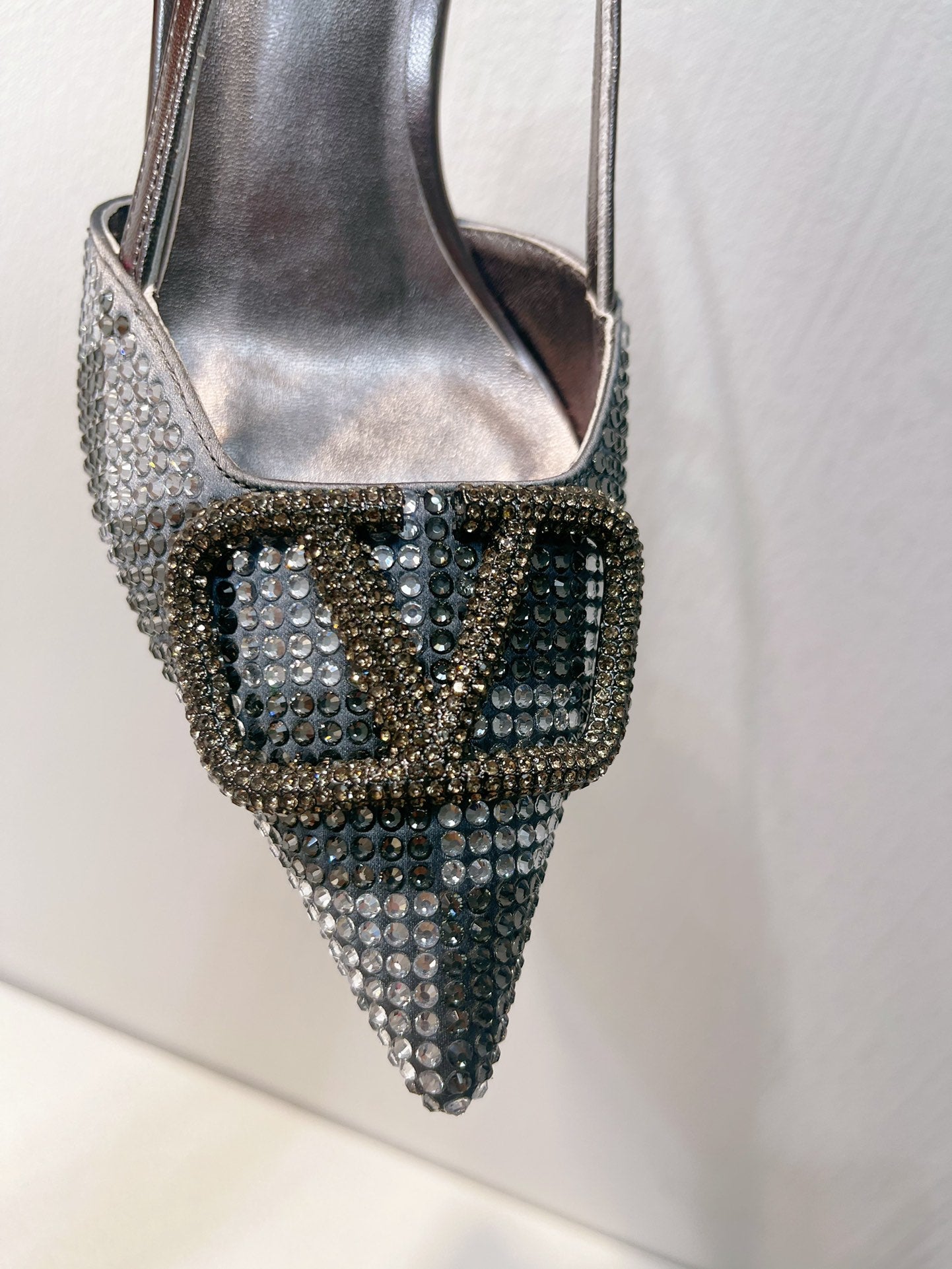 VT High Heeled Slingbacks Gray Sheepskin 292815