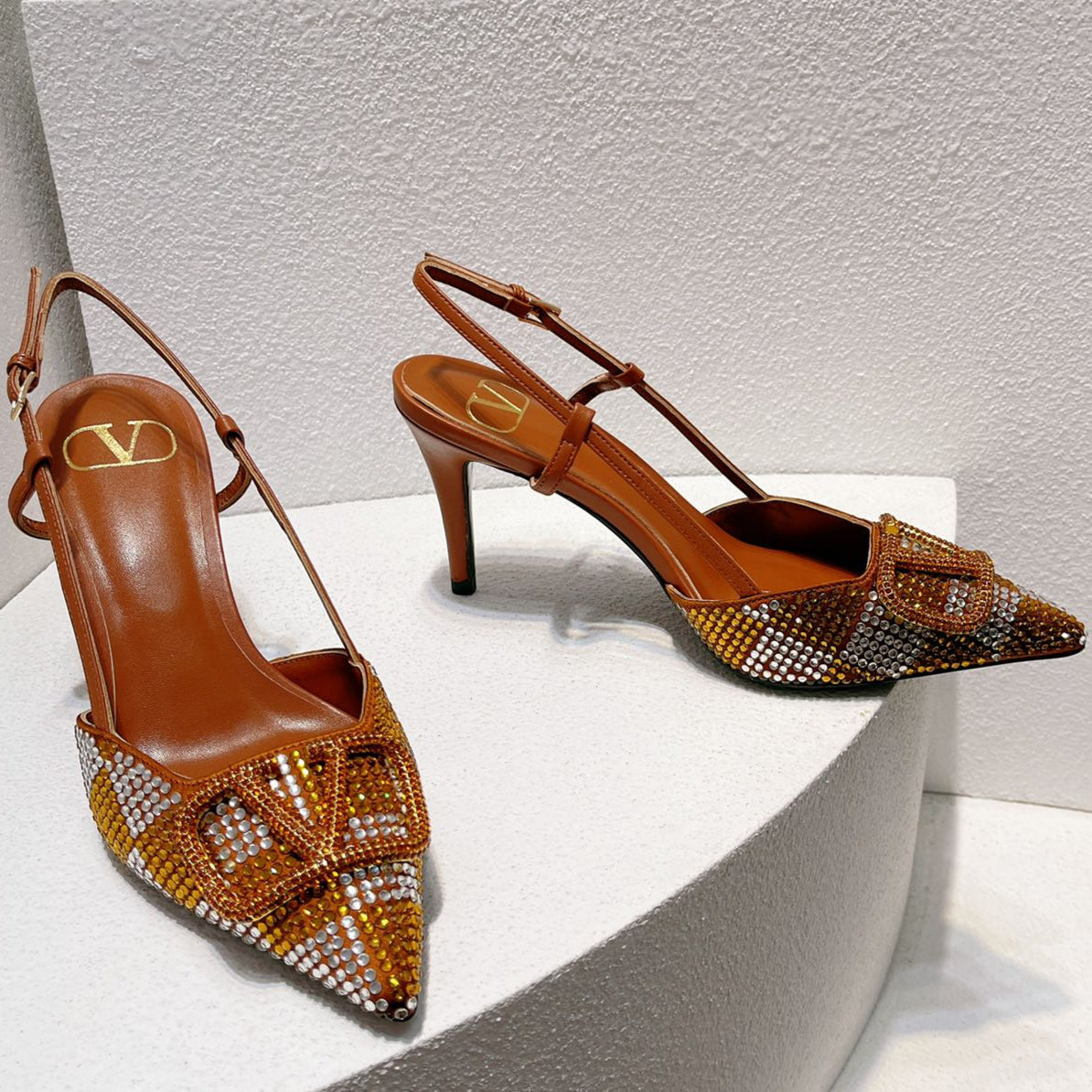 VT High Heeled Slingbacks Russet Sheepskin 292822