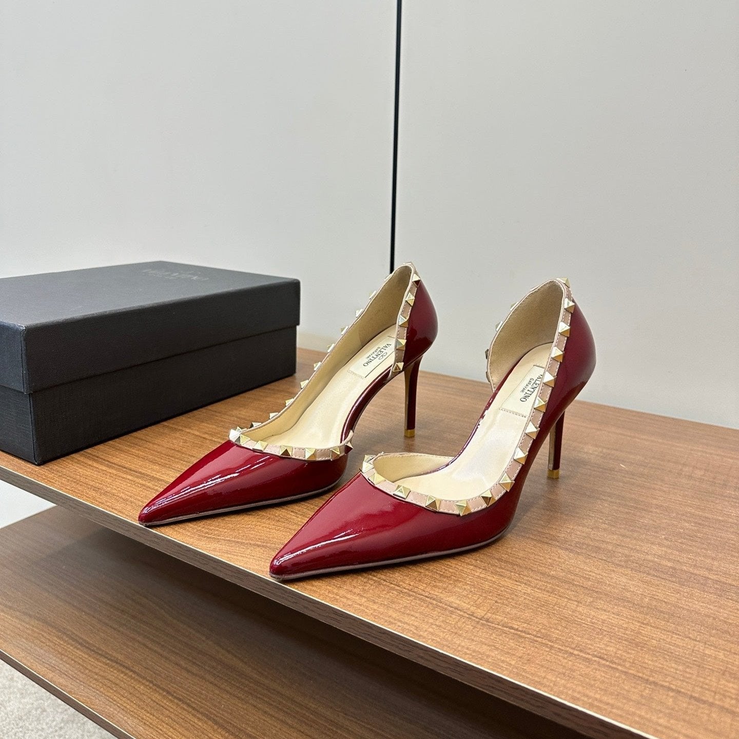 Valentino Red Rockstud D'Orsay Pumps 95mm Cowhide 989893
