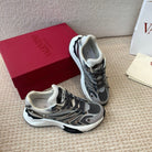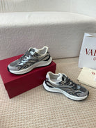 Valentino Sneaker 50mm In Black Mix Grey Blue Mesh Fabric And Cowhide 814272