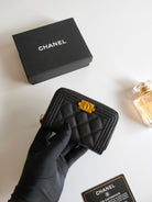 CC BOY ZIP COIN PURSE 11.5 BLACK GRAINED CALFSKIN GOLD ICON
