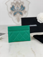 CC CARD HOLDER 19.5 EMERALD GRAINED CALFSKIN GOLD ICON