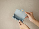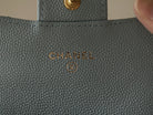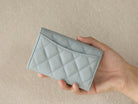 CC FLAP CARD HOLDER 11.3 LIGHT BLUE GRAINED CALFSKIN GOLD ICON
