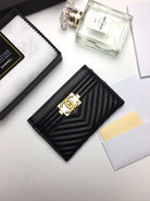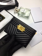 CC LINE CARD HOLDER 11.2 BLACK CALFSKIN GOLD ICON