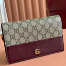 Gucci Marmont Chain Wallet Ebony mix Rosso Ancora Red Leather Canvas 255316