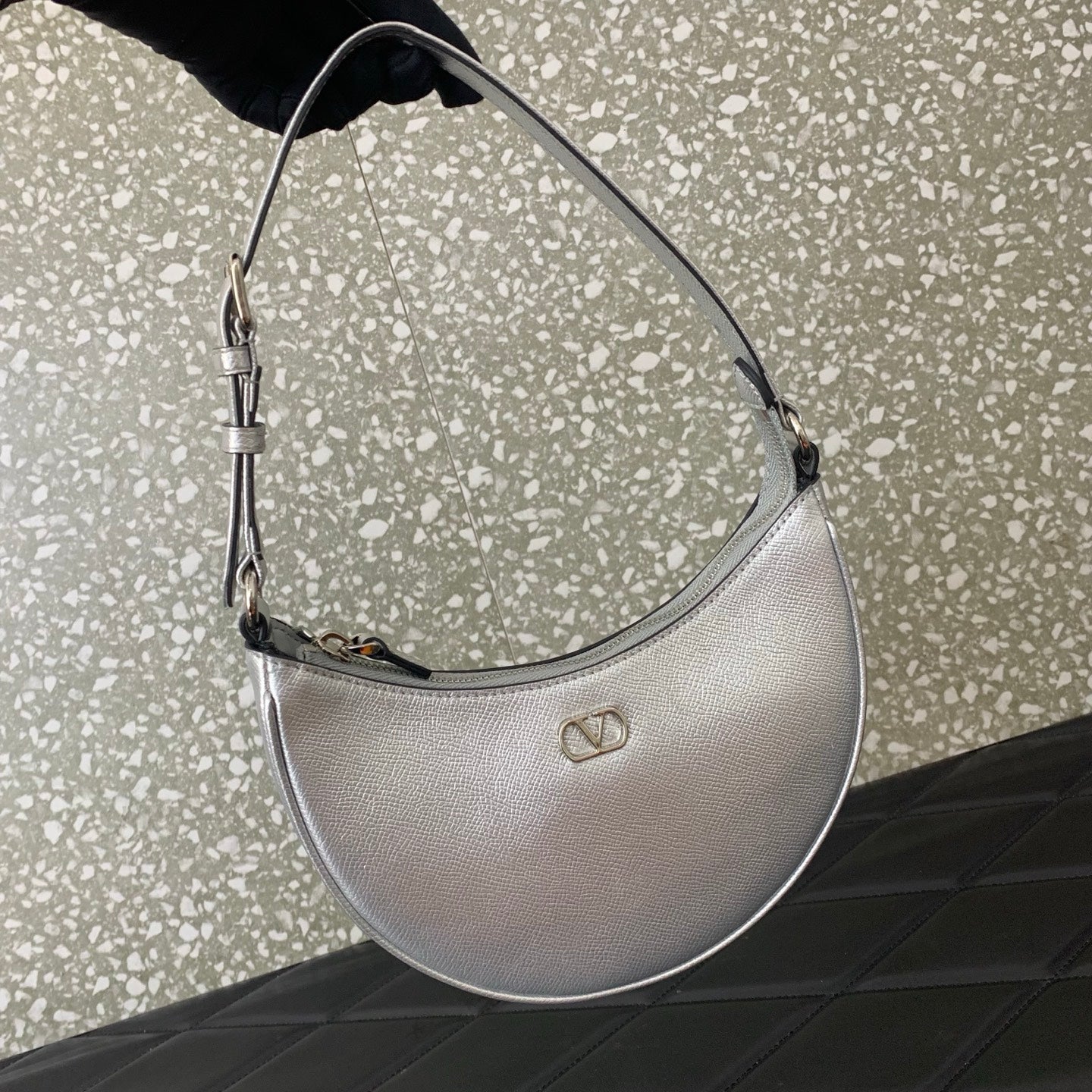 VA GARAVANI VLOGO mini HOBO bag sliver calfskin 566881