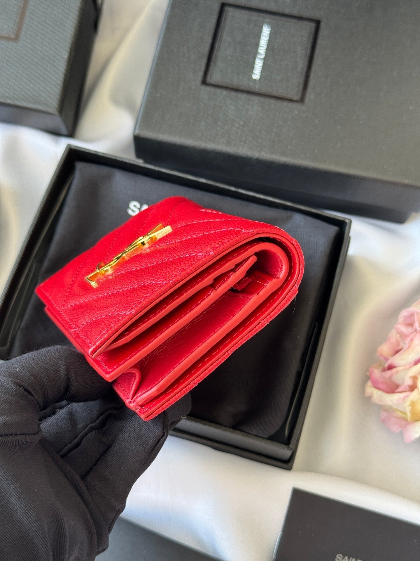 YSL Wallet Red Gold Cowhide 240592