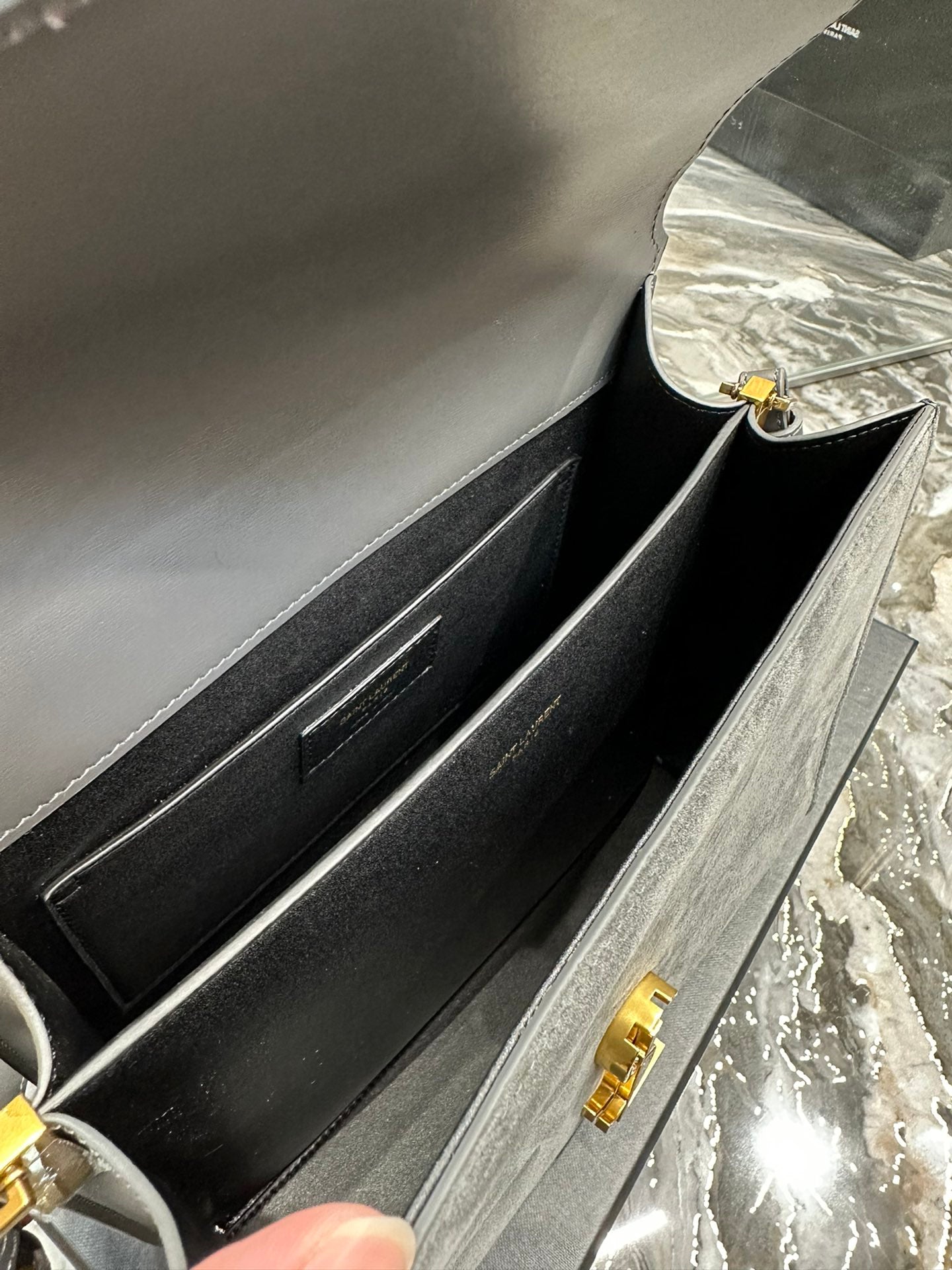 • Swivel clasp, YSL monogram, adjustable chain strap.