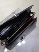 CASSANDRA CHAIN BAG 22 IN BLACK CROCODILE PATTERN CALFSKIN SILVER HARDWARE