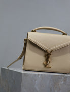 CASSANDRA MINI TOP HANDLE BAG 20 IN BEIGE CALFSKIN GOLD HARDWARE