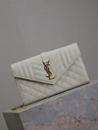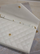 ENVELOPE CHAIN BAG 22 IN WHITE LAMBSKIN GOLD HARDWARE