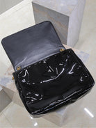 JAMIE 4.3 LARGE BAG 43 IN BLACK PATENT LAMBSKIN GOLD HARDWARE