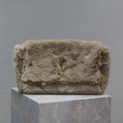 KATE FLAP BAG 28 IN ECRU BEIGE RABBIT FUR GOLD CHAIN