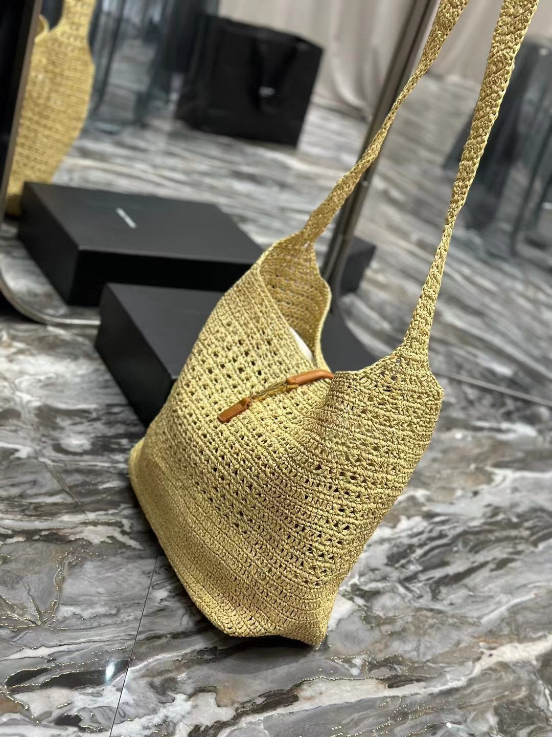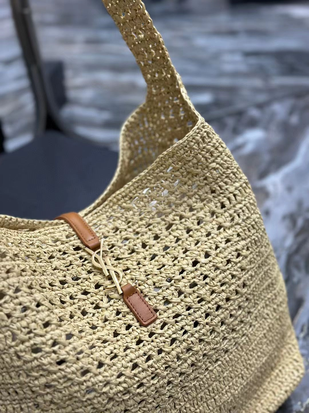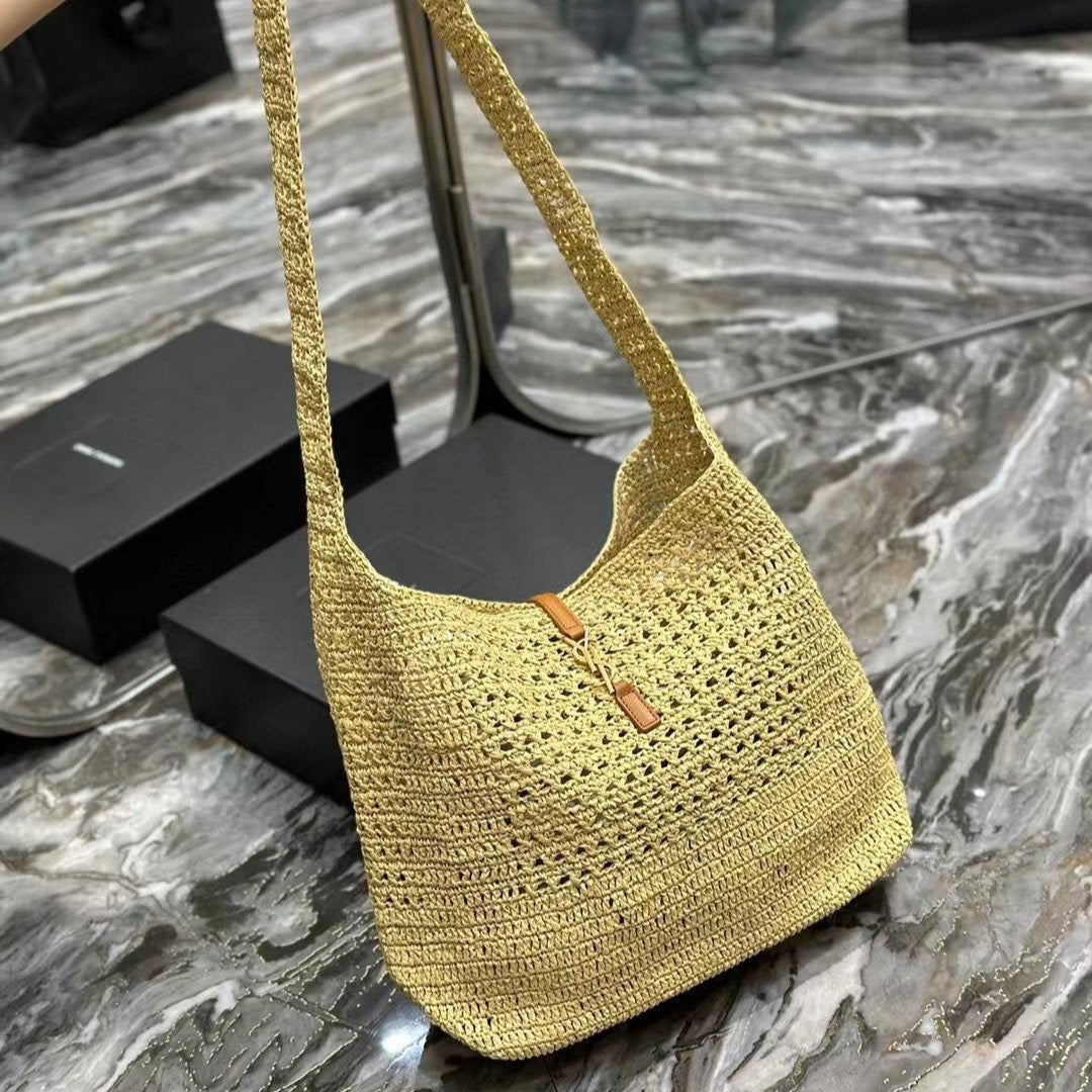 YSL HOBO BAG 30CM BEIGE RAFFIA