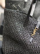 YSL MEDIUM 44CM PANIER BLACK RAFFIA TOTE BAG