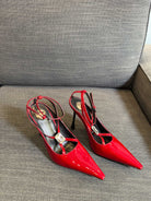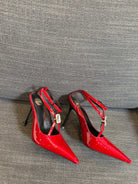 HIGH SANDAL ATTACHED GEM IN RED GLOSSY CALFSKIN