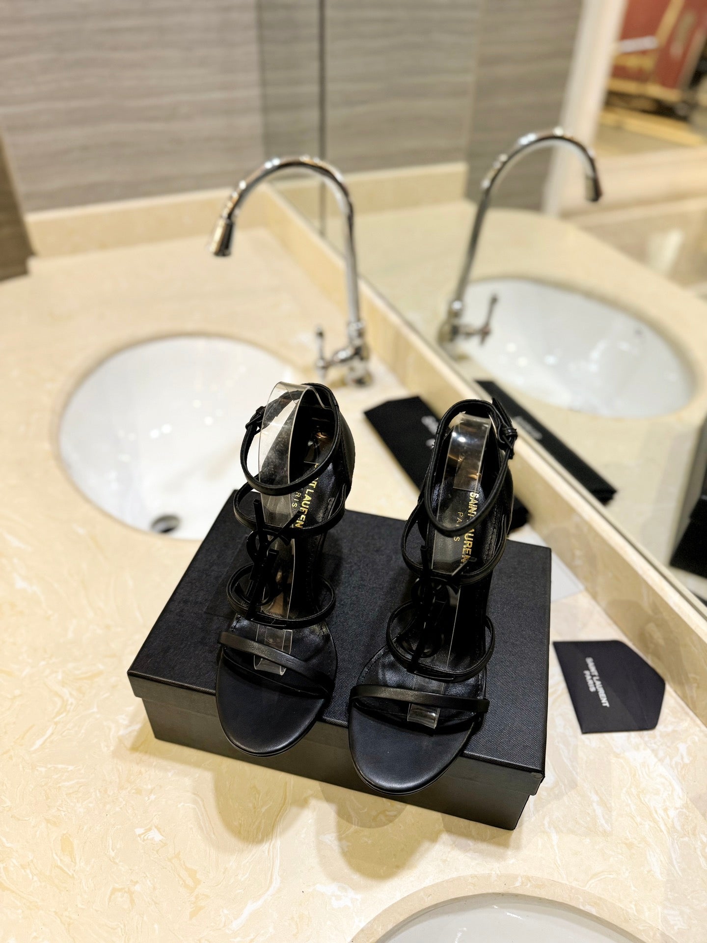 SL CASSANDRA HEELED SANDALS BLACK CALFSKIN