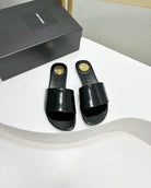CARLYLE SLIDES IN BLACK GLAZED LEATHER