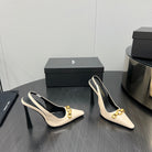 GOLD CHAIN ATTACHED HIGH SLINGBACK IN CREAM GLOSSY CALFSKIN