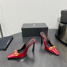 GOLD CHAIN ATTACHED HIGH SLINGBACK IN RED GLOSSY CALFSKIN