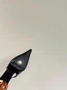 GREEN GEM-STUDDED SLINGBACK PUMPS IN BLACK PATENT CALFSKIN