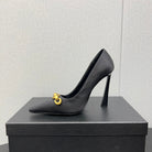 HIGH PUMPS IN BLACK SILK ATTACHED GOLD CHAIN