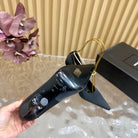 RÉGINE PUMPS IN BLACK SATIN GOLD CHAIN