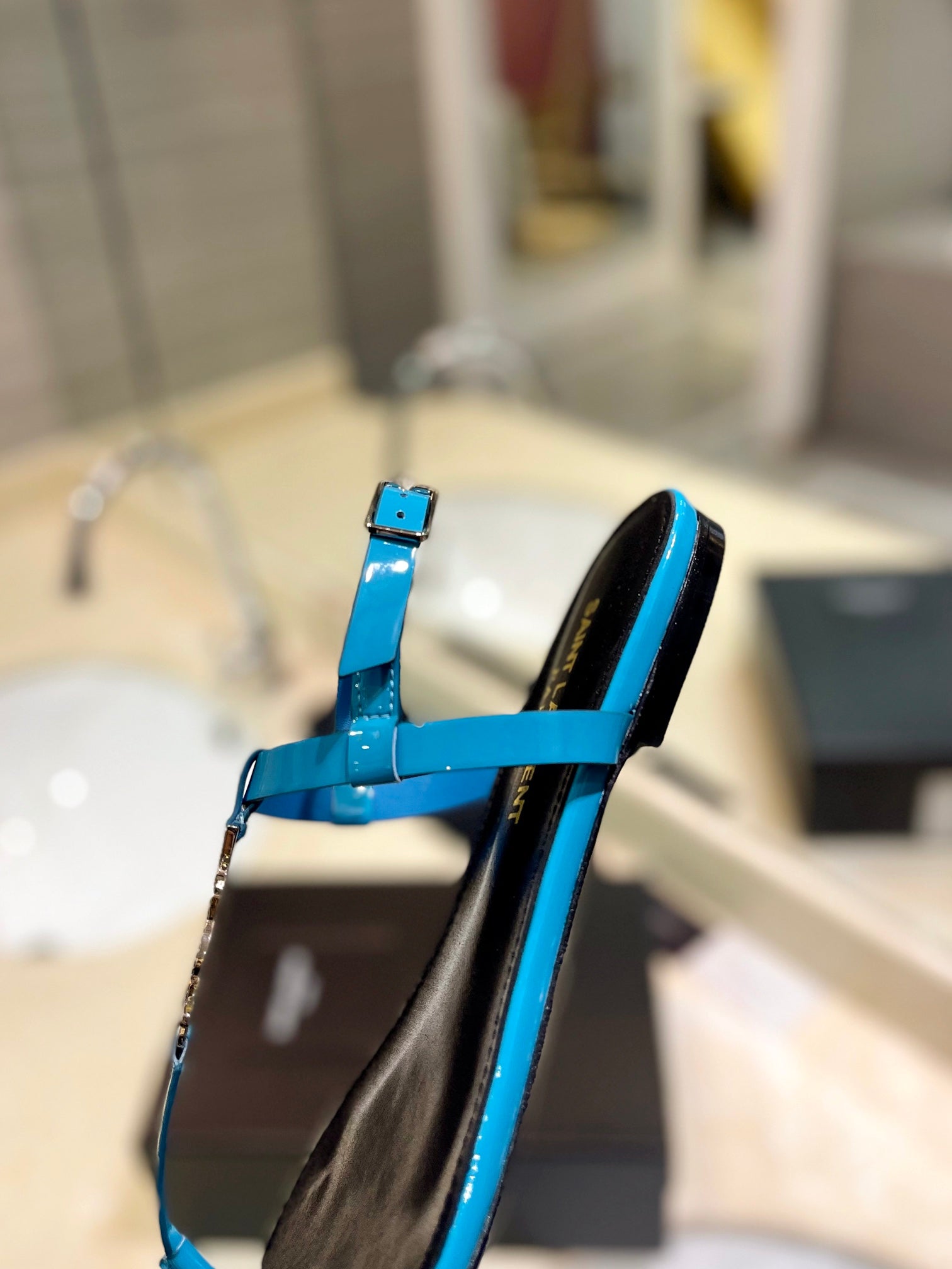 SL CASSANDRA SANDALS CERULEAN POLISHED CALFSKIN