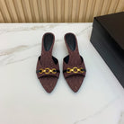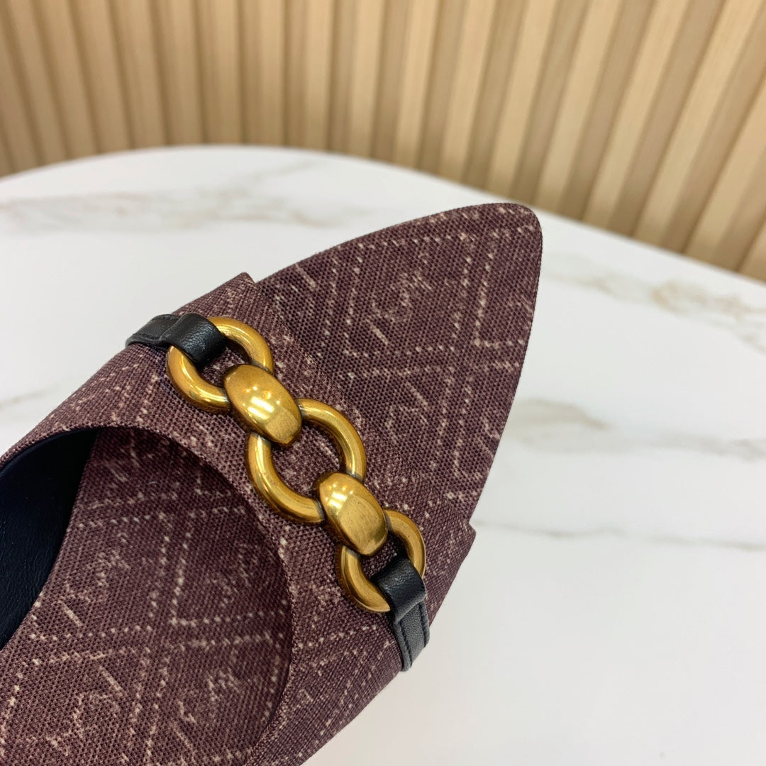 SL CHAIN ATTACH HEELED MULES BROWN DENIM