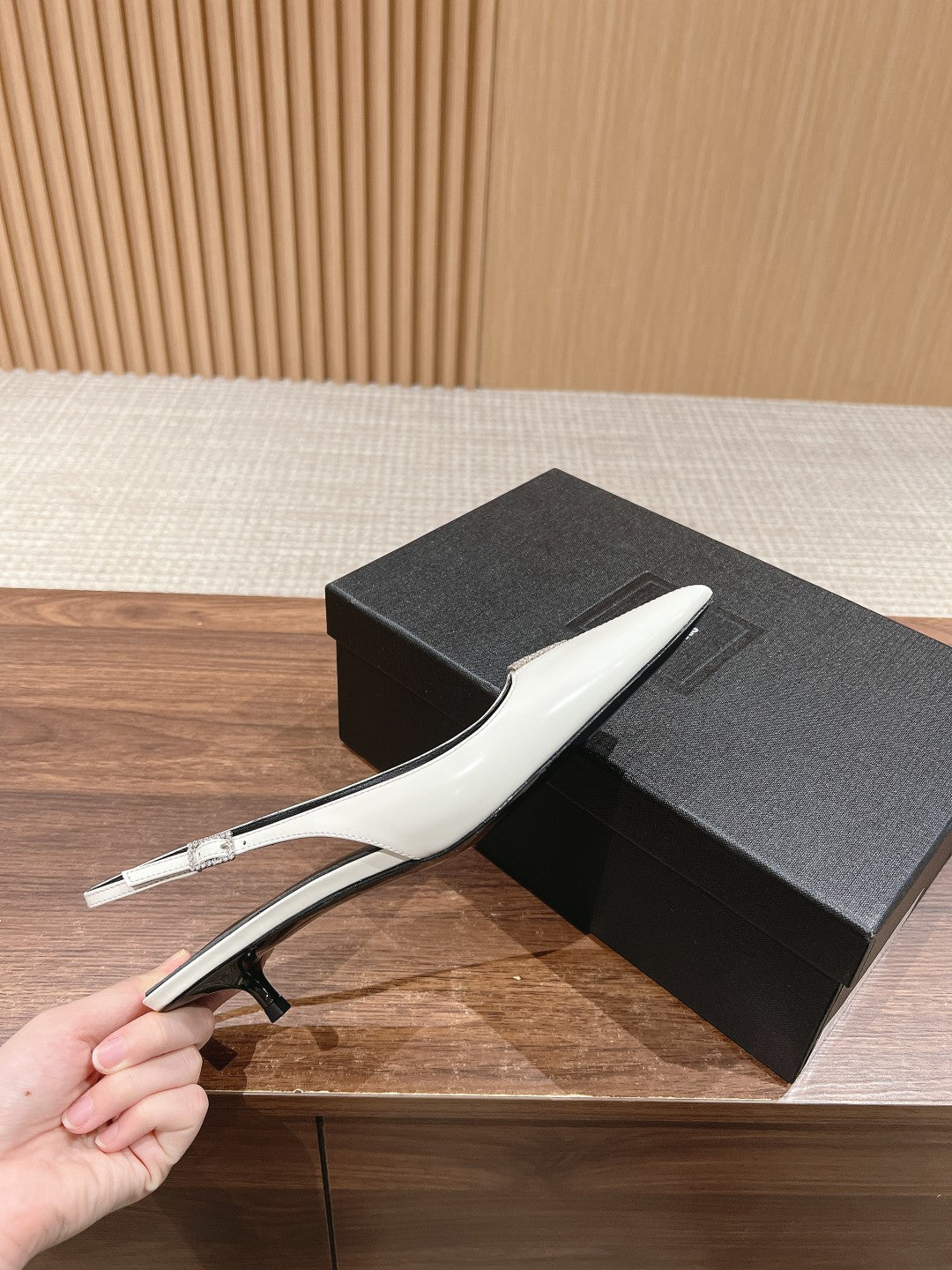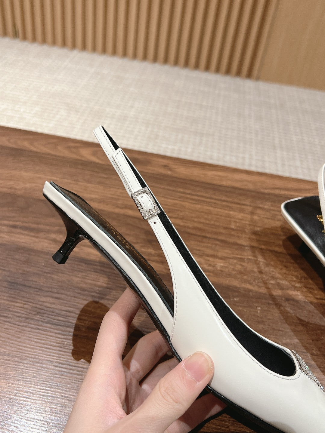 SL CHERISH CRYSTAL SLINGBACK WHITE CALFSKIN