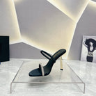 SL CRYSTAL THIN BELT HIGH HEELS BLACK SATIN