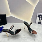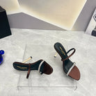 SL CRYSTAL THIN BELT HIGH HEELS BROWN SATIN