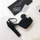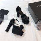 SL IVY FLORAL 135 PLATFORM SANDAL BLACK SUEDE