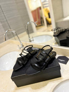 SL LOGO FLAT SANDALS BLACK CALFSKIN