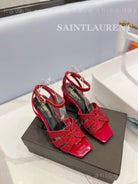 SL TRIBUTE CRYSTAL SANDALS GLOSSY RED CALFSKIN