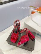 SL TRIBUTE FLATFORM SANDALS GLOSSY RED CALFSKIN